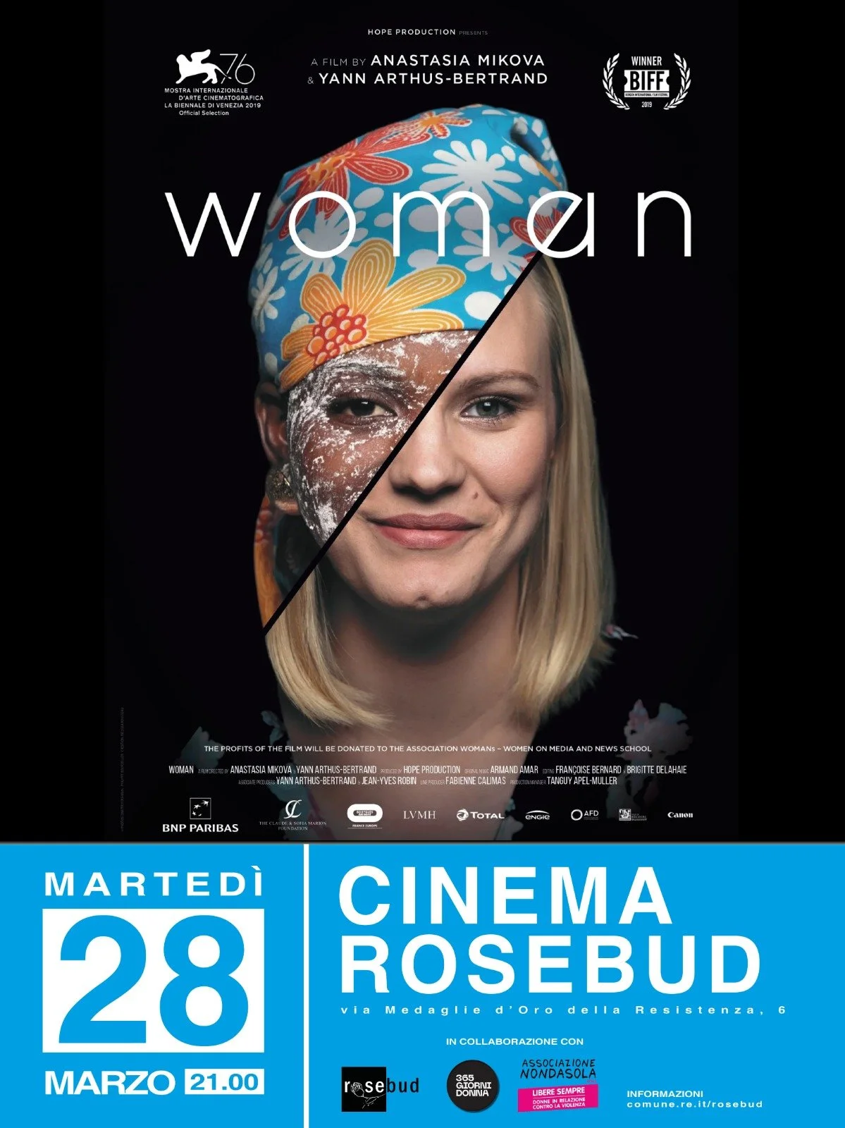 Vi invitiamo a partecipare alla proiezione del film "Woman" che si terrà al Cinema Rosebud il giorno 28 marzo alle ore 21.00.
