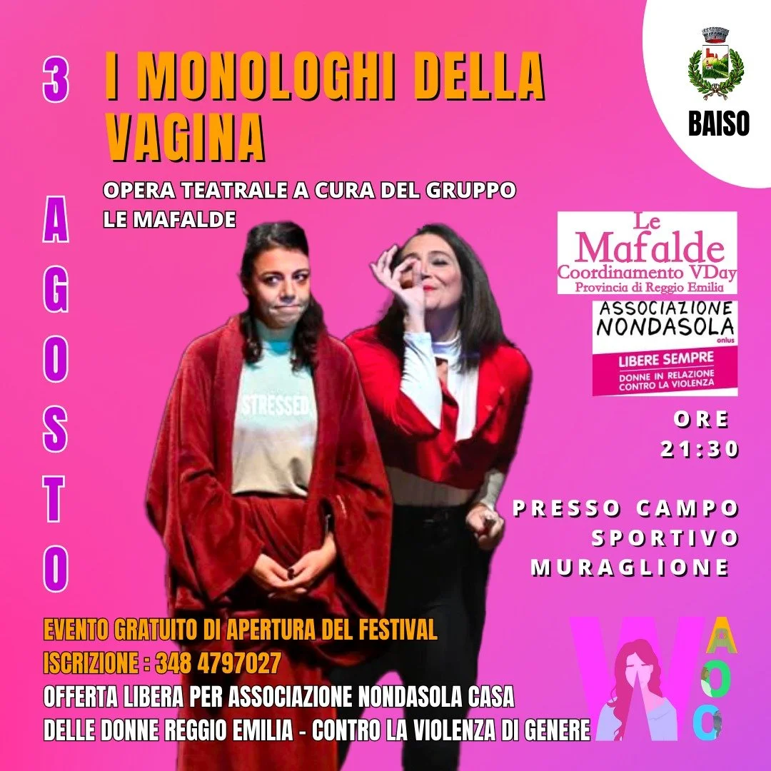 News Donne Nondasola 27/07/23 News Donne Nondasola 27/07/23 Giovedì 3 agosto 2023 I Monologhi della Vagina a Baiso Scopri di più
