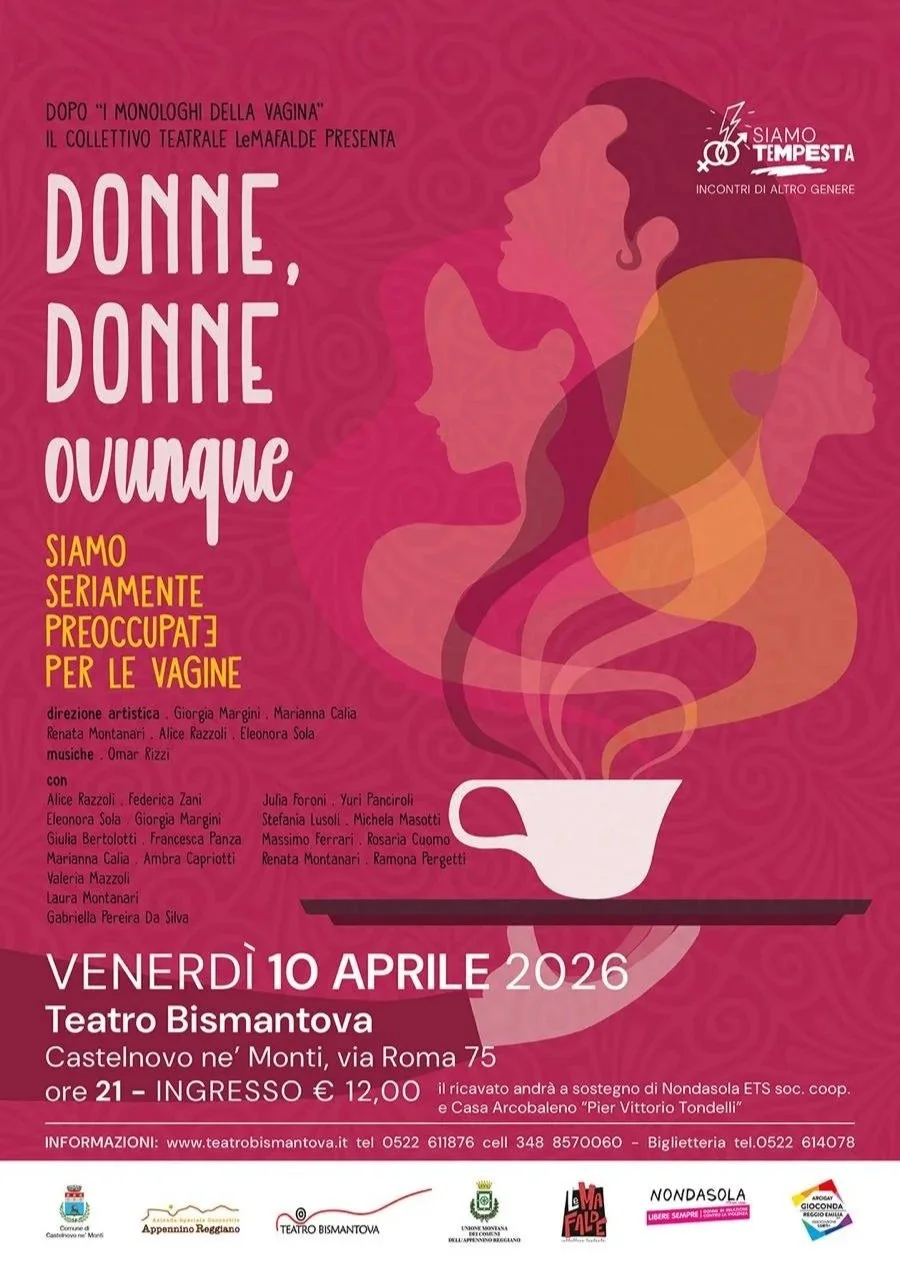 Volentieri vi segnaliamo lo spettacolo “Donne, donne ovunque”, presentato dal collettivo teatrale LeMafalde, che si terrà il giorno venerdì 10 aprile alle ore 21 presso il Teatro Bismantova di Castelnovo ne’ Monti, via Roma 75.